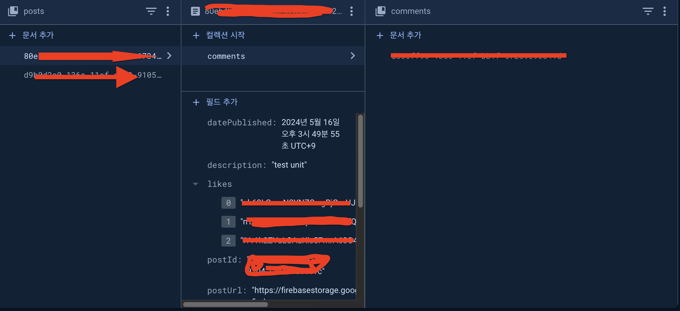 - 좋아요 기능 구현시 Firebase 포스트에 좋아요 한 유저의 uid를 함께 넣어줌.